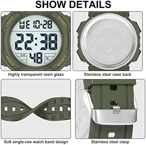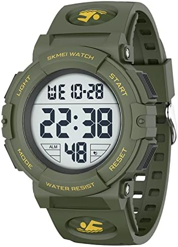 [5ATM WATERPROOF ]: 164Ft / 50M waterproof, this digital waterproof watch is sweatproof, rainproof,suitable for swimming in shallow water and cold showering,but keep away from hot water and steam.