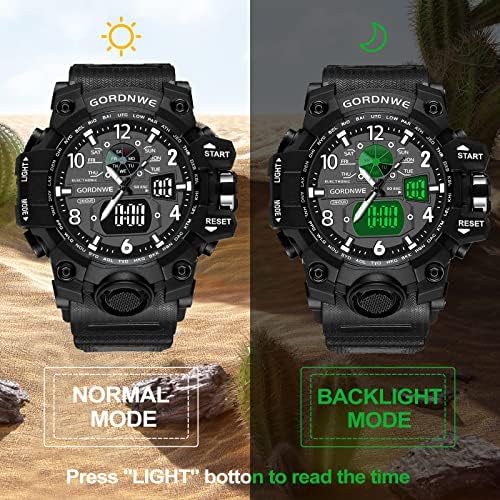 【Military Sport Design】Supports both digital and analog displays. 56mm Large Dial and illuminated display show the time clearly in the dark. With fashionable tactical sporty dial design and easy settings, the men’s military watch is the perfect gift for family and friends.