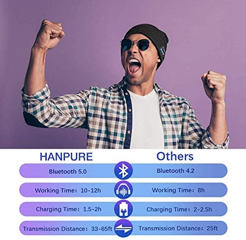 The Latest V5.0 Bluetooth Headphones: HANPURE Bluetooth hat stocking stuffer for men grandpa gifts christmas gifts for dad equipped with the latest Bluetooth 5.0 technology for quick pairing to smartphones, tablets, or other Bluetooth-enabled devices from a range of up to 65 feet. Wireless earphone beanie also comes with intuitive controls for seamless and easy access control buttons to manage hands-free calls, gifts for boyfriend wireless music streaming, volume adjustment
