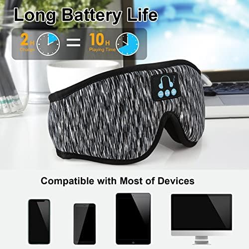 2 Hours Quick Charge for 10 Hours Playing: Bluetooth eye mask for sleeping built-in upgraded and usb chargeable battery and microphone. Bluetooth Sleeping Mask only needs to be charged for 2~2.5 hours, and the talk time/music playback time can reach 10 hours, which is enough to support the whole night.