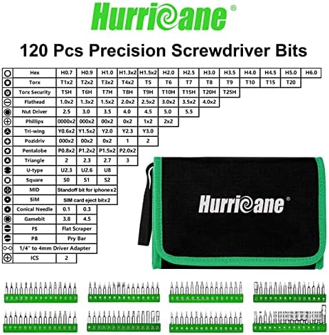 【Professional Repair Tool Kit】Hurricane 142 in 1 electronics repair tool kit includes 120 screwdriver bits.This toolkit has what you need to repair all laptops, iPad, iPhone, PC, cell phone, computer, glasses, game consoles, toys , PS4/Xbox controller, camera and other electronics. These tools worked great for fix or disassemble.