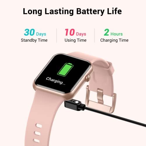 Long Lasting Battery Life: The watch can be used for up to 7 days and standby for 30+ days after 2-hours fully charged, which completely avoid the trouble of frequent charging. With 5ATM Waterproof design, can be worn when washing hands, sweating, light rain, which meet the waterproof requirements of your daily activities.