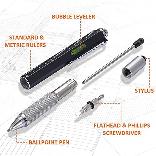 【6 in 1 Multitools Pen】 Level,ruler,Touch nib, flathead, Phillips,pen. You will get construction tools pen in a stylish box.multi tool pen for construction,engineer,woodworker,carpenter,handyman, etc. Great for home improvement, electrical, and DIY. Tool pen is an innovative multi tool which truly a work of art with engineering that can provides unlimited possible support for your imagination.