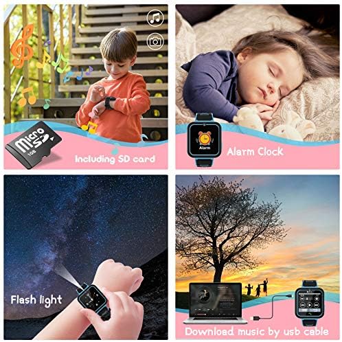 【Camera and Music Player & Calculator】This kids watch can be used not only for entertainment but also for learning. A front 300,000-pixel camera for taking selfie, also equipped with music player and sound recorder. Includes a USB cable support transfer photos and sound files to computer and a 1GB SD card for download 50 songs or storage 100 photos. The calculator function can help the child write math homework