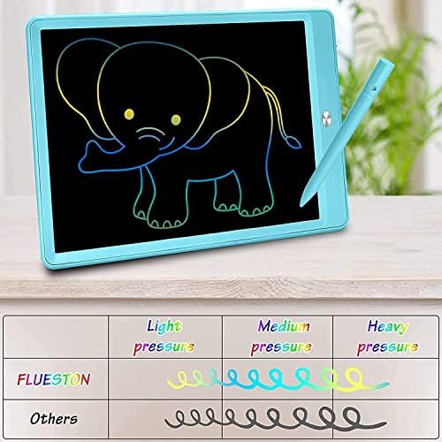 👩🎨 [NO BLUE LIGHT, PROTECT CHILDREN’S EYES, E-CO-FRIENDLY]: FLUESTON LCD writing tablet using highly sensitive pressure sensitive technology and smooth flexible LCD color screen, the lines are colorful, clear and eye-catching. The screen is not self-illuminating, and its optical writing characteristics are the same as papers. No dust, ink, ra-diation, g-lare, safe and hy-gienic, all shield eyes, be safe & comfortable when your kids create work for quite a while.