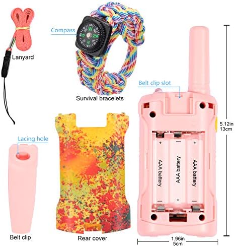 ☞MULTIFUNCTIONAL & PORTABLE Less screen time, more outside activities. The army walkie talkies for kids are equipped with durable survival bracelets, suitable for Camping, Hiking, Hunting, Hide and Seek, Gun War, Travel, Party, Shopping Mall, Cruise Ship, Nature Exploration, Outdoor Adventure Game and Pretend Play. Holiday gifts for girls such as Christmas, Halloween, Thanksgiving, Birthday Parties.