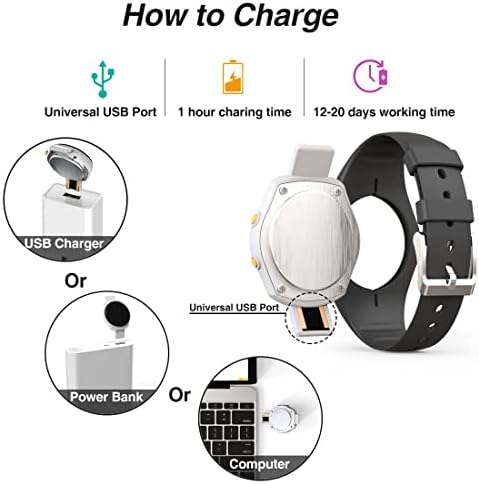 [LOOG BATTERY LIFE/ EASY CHARGING]: Remove the watch from the strap ,then plug micro USB cable into the watch to charge. Fully charged battery will last up to 12-20 days and the USB charging is easy!