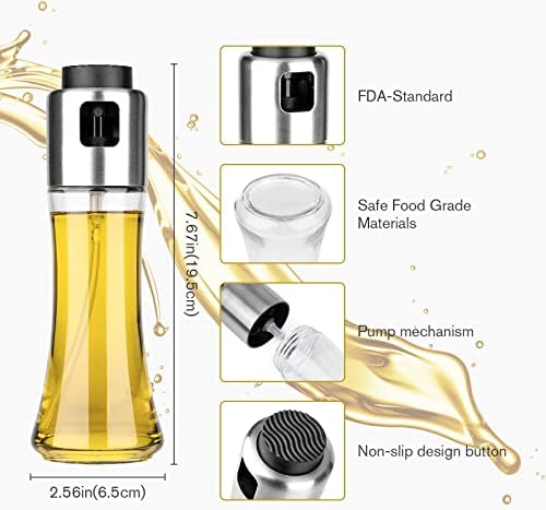 Perfect quality:Preemium Quality-The oil sprayer for cooking is made of 304 stainless steel and food-grade lead-free glass and Eco-friendly.