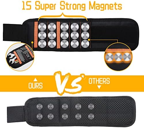 STRONG MAGNETIC- Each magnetic tool accessory contains 15 powerful magnets embedded in the wristband for holding screws, nails, bolts, fasteners, pins,washers and drill bits with ease.Perfect for home improvement, construction, carpentry, auto repair, sewing, and other DIY projects. Save time & energy with this convenient magnetic wristband!