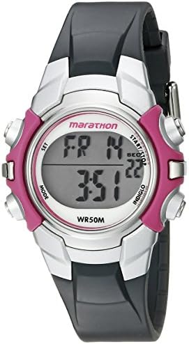 Silver-tone & pink 33mm resin case with acrylic lens; gray digital display; Indiglo light-up watch dial