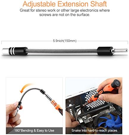 The multifunctional magnetic screwdriver kit has 56 different drill bits and can accommodate many special-shaped screws to meet all your needs. The strong and flexible shaft extension can easily reach some difficult places. The magnifying glass makes it easier to use small precision parts. Various lever opening tools can improve your work efficiency. Microfiber cloth is very suitable for cleaning. A complete and compact kit can make your repairs faster and smoother.
