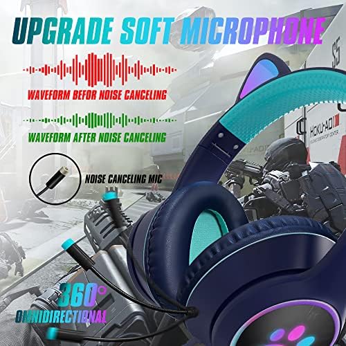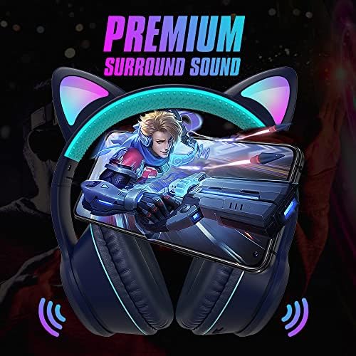 【LED Light Cat Ear + USB Connect】 LED lights desigend on the earcups and cat ear. Connect by USB Port (12-month replacement warranty)