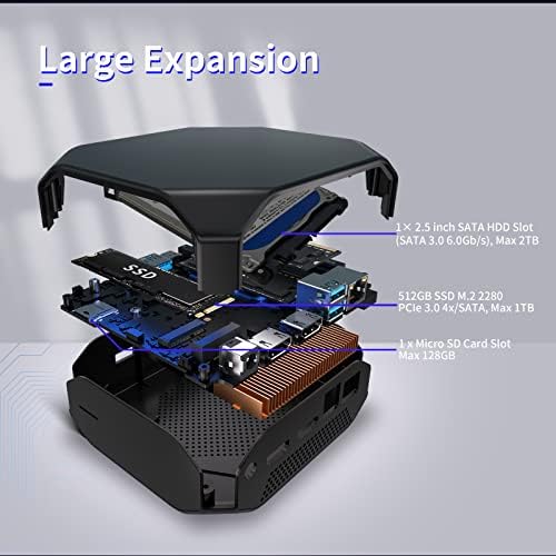 Large Storage Expansion: Mini pc with dual channels(SODIMM Slots x 2), the 16GB RAM can be expanded up to 32GB RAM of single slot and up to 64GB of dual slots. Installed 512GB M.2 2280 NVMe 3.0 4x solid-state drive can be upgraded to 1TB and support 2TB HDD expansion via 1 x 2.5 inch SATA HDD Slot(SATA 3.0 6.0Gb/s), up to 128GB storage via micro sd card slot and more external hard drives via USB 3.1 Ports. Never worry about lack of capacity.