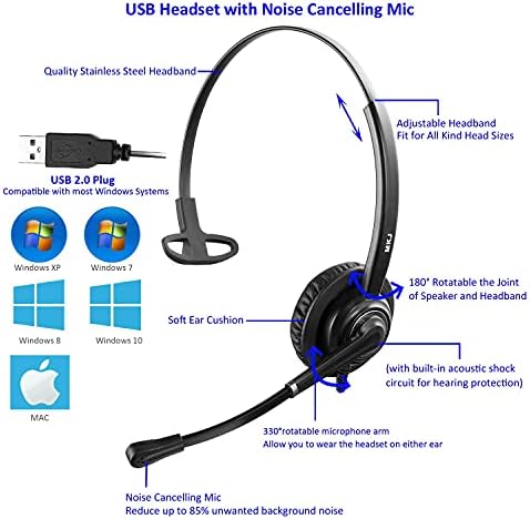 Wide Compatibility: This noise cancelling computer headset is equipped with standard USB 2.0 plug and fully compatible with most mainstream UC platforms and computer systems, including Window XP/7/8/10 MAC etc, Skype for Business, Microsoft Teams, Zoom Meetings, Webex, Google Meet, Google Voice, softphone AVAYA, 3CX, Cisco Jabber etc.