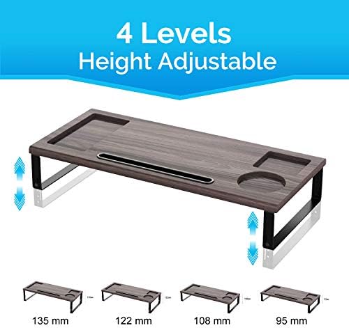 STYLISH DESIGN & PERFECT SIZE: Designed with a nice and trendy look and a perfect size of 54cm(W) x 24cm(D) x 13.5cm(H). This computer monitor stand is made of high quality MDF material with wooden texture. The adjustable height design allows you to customize your own viewing position. Ideal for all kinds of laptops, monitors, printers, and computer screens.