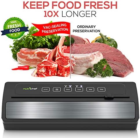 LAB TESTED QUALITY: Vacuum sealers preserve food up to 5 times longer than zipper baggies or containers, basically depending on the type of food. The NutriChef Vacuum Sealer however, was subjected to specific laboratory testing to effectively increase food shelf life.