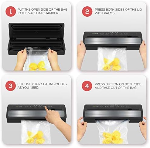TWO SEALING MODES: Useful and practical, the NutriChef vacuum sealing system is cleverly designed owning two selectable modes to provide your food with the best possible preservation based on the type of food you want to seal. You can choose the dry indication for solid food items and the moist indication for poached, simmered or steamed food.
