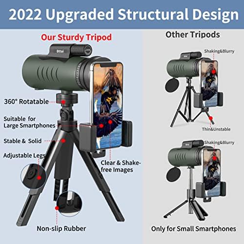 Wide Applicable for Smartphone: Ottui monocular telescope is equipped with quick alignment smartphone holder and a sturdy tripod(4.5-6 inches), which is compatible with for all kinds of iPhone and Android such as Samsung, Sony, Google, LG etc. These accessories enables shake-free images and videos to be captured or observing the nature for a long time with hands free up. Our monocular also comes with carrying case, lens covers, cleaning cloth, hand strap and user manual.