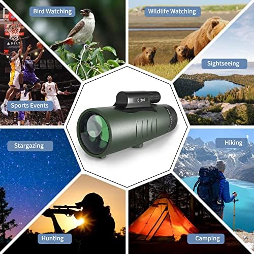Upgraded 12×50 Monocular: With its 12X power magnification and 50mm object lens, Ottui high power monocular telescope can bring the world 12X closer in a wide-angle view and enable you to capture clear and high-quality images. The adjustable focus wheel can enable you to see views from different distances up to 1000 yards. You can explore the objections or nature world in the distance effortlessly with this device.