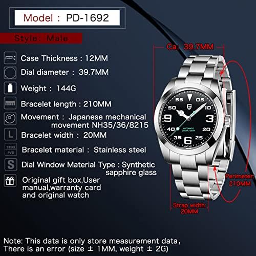 PAGANI DESIGN Automatic Watch: NH35A movement imported from Japan is of excellent quality, with a daily error of plus or minus 5 seconds. A good movement determines the value of a watch.When we wear a watch, the swing of our arms will drive the pendulum to rotate, and the winding in the watch will drive the chain of the watch, Push the time operation, and wear the rotating handle head for 20-30 turns for the first time