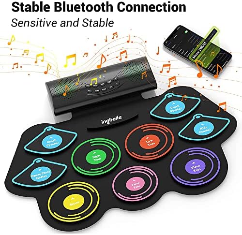 【Drumming On The Go】- Our Electric Drum Set is powered by a built-in 2400mAh rechargeable battery, lasting up to 10 hours play per charge, you could roll it up and pack it in your bag to take it anywhere for outdoor parties, choir practice, studio, music/drum lessons