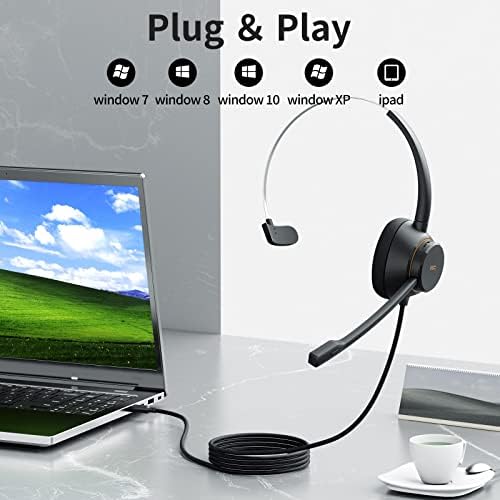 EASY TO USE: The phone headsets for office phones does not need to install a driver, just plug it into a computer and use it. Easily adjust the mute button with a blue light indicator and up/down volume buttons
