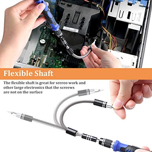 🧰【Magnetic & Ergonomic Handle】The extension shaft have magnetic feature, STRONG magnetic tips makes it easy to fix bit and pull screws out. Ergonomic and press & push design handle, it is comfortable to hold even for the long-time use.