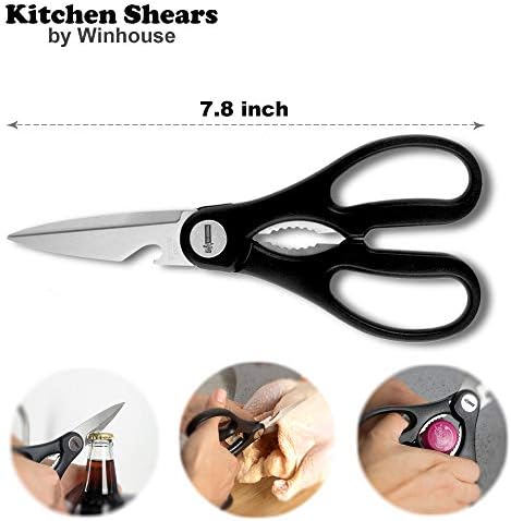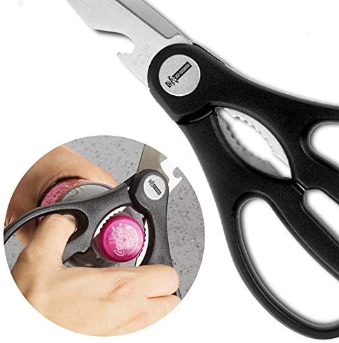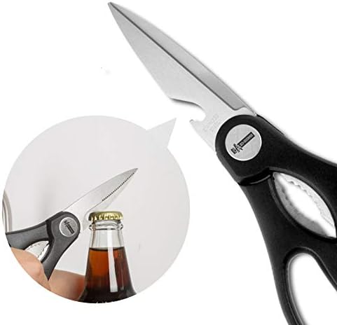 The perfect premium kitchen shears have a wide variety of uses. It is designed to cut anything smoothly with the minimal effort, no matter for food, flowers, paper, cardboard, even animal bones. Opening bottles and cracking functions included will be great for working in the kitchen. Characteristic