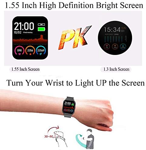 【Smart Watch with Heart Rate Monitor,Blood pressure Monitor , Blood Oxygen Monitor,Sleep Monitor】The fitness tracker can track your heart rate,blood pressure ,blood oxygen, sleep monitor, sedentary reminder,and all-day activities. It can display sports steps, sports mileage ,walking time and burned calorie etc. You can know your physical condition easily from the data.