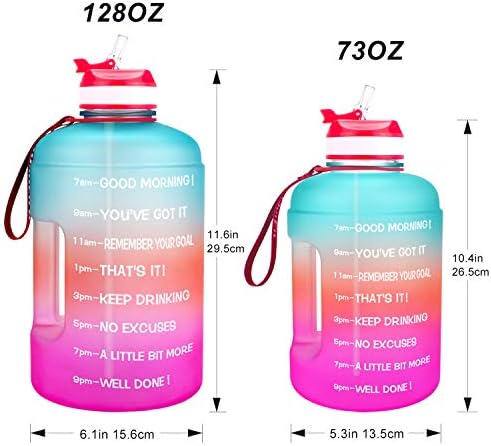 【LARGE CAPACITY】With large capacity(128 oz) let you enjoy one full water bottle without having to refill it frequently. Featured with transparent appearance help you check the actual amount of water intake easily and clearly.we offer water bottle in 128 oz, 73 oz and 43 oz size