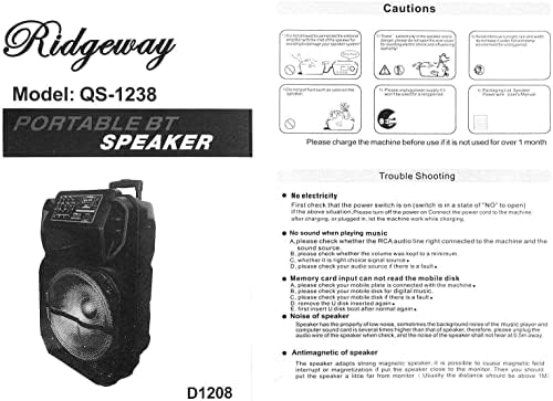 Ridgeway 12″ Rechargeable Bluetooth Party DJ Speaker Multi-Lights 3600m Ah Batteries Powerful 3200 Watts Speaker