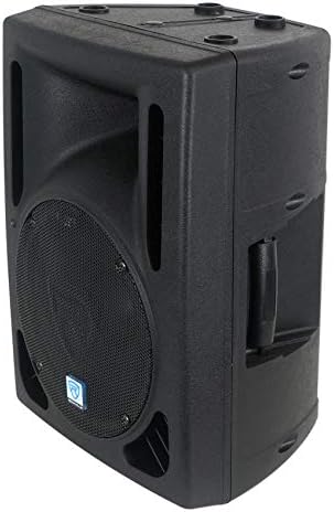 Versatile trapezoidal enclosure design allows different positioning., Stand mounting with 35-mm pole socket., Ergonomically shaped side mount handle for easy carrying and setup., High-quality components and exceptionally rugged high impact ABS construction., Amplifier clip limit LED indicator & power LED cabinet rear., Front display power meter Blue LED., 115 / 230 Volt switchable power supply with external user serviceable fusing, Dimensions: 14.21″ X 10.9″ X 19.72″