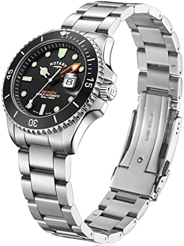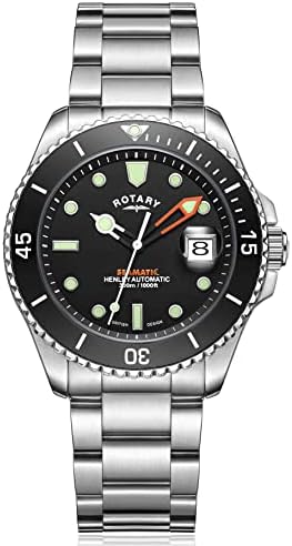 This Henley Seamatic divers watch features a stainless steel case and 3 link bracelet, which is secured by a Divers Z clasp for optimized security. The black dial, which displays luminous indices and open hour/minute hands, is protected beneath sapphire glass which hosts a cyclops magnifier over the date window. This timepiece also features a black unidirectional bezel, and on the side of the 42mm case is a crown and crown guard. Powered by a reliable Miyota 8215 movement, the watch is water resistant to 300m.