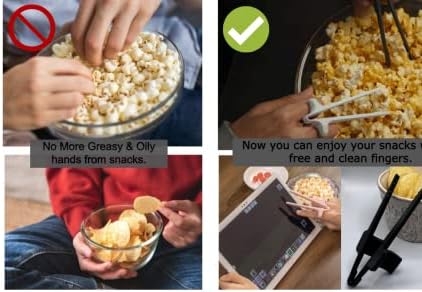 When you’re scrolling through your phone, working on your computer or playing video games with your friends, and having your snacks next to you, your hands will become dirty and oily from picking up the snacks with your hands, but with these finger chopsticks forget about oily fingers, you now can easily pick up your chips or any snack and keep your fingers nice &Clean.