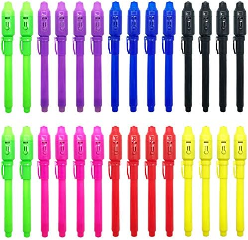Invisible Ink Pens with UV Light: Harmless and tasteless ink, healthy toy for your kids! Smooth and colorful disappearing inks on t-shirts, paper! Permanent but washable! you can easily host a kid’s birthday party favors stocking stuffer, treasure hunt,escape room,Valentines Day Gifts or classroom activity complete with invisible ink clues!