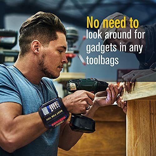 Novel Material – Features two pockets of different depths for holding non-metallic gadgets such as plastic expansion screws, copper/aluminum gadgets, etc. Elastic band material to wrap the pockets mouth to prevent tools from falling off. Double Velcro fastening allows for easy and convenient adjustment to fit any size wrist. Elastic cuff bands on the back for easily wearing on arms.