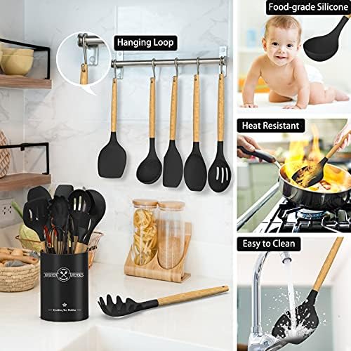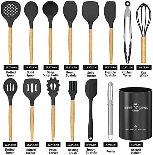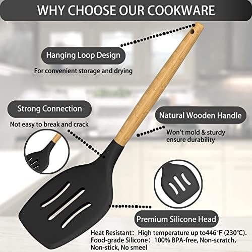 🥪【HEAT RESISTANT & NON MELTING & DURABLE】Cooking utensils can withstand high temperature up to 446ºF (230°C), no worry about them melting during high temperature cooking. Upgraded handles are made of solid wood, has excellent heat insulation, protects your hands from burns. Compared with other traditional utensils, our kitchen utensils more durable, ensuring that they will not bend, break or crack during use, can be used for many years.