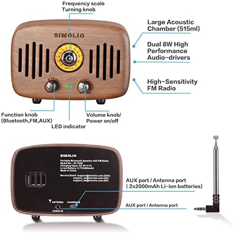 SIMOLIO Retro Wood Radio Bluetooth Speaker