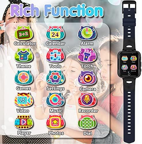 🎉 2022 Newest Game Watch: New 1.54″HD touch screen design, Rich Game & Function including 24 game, camera, MP3 player, video player, pedometer, recording, games, alarm clock, clock, stopwatch, calendar, countdown, clock answers, photo album, flashlight. Which can bring convenience and fun to children in their lives