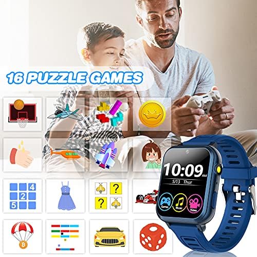 🚀 Newest Game Smartwatch: Our NEW version kids smartwatch equip with Metal dial, 16 Puzzle games, camera, video, music, pedometer, stopwatch, alarm clock, timer, torch, calculator, calendar, Wallpapers ect