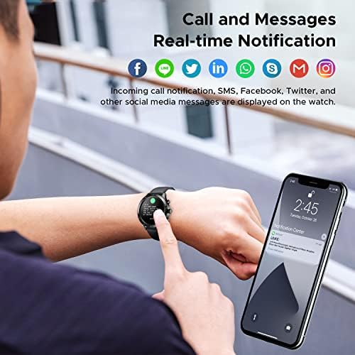 Message Notification and Impressive Waterproofing – You can read incoming texts and emails and see who’s calling you instantly, at the same time your phone receives it with no lag, however, cannot answer back. And it is IP68 waterproof and sweat proof. So you can swim with it, shower with it(cold water). Running in the rain and wash hands and dishes will not destroy the watch either. Howevewr, no diving and swimming in the sea. Music and camera control, alarm timer and temprature are available.
