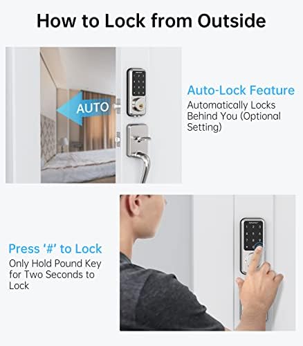 Smart Keyless Entry Door Lock: Enter pin codes on touchscreen keypad, Bluetooth unlocking with smartphone App, use mechanical keys come with the lock (the key hole is hidden by a cover) No Internet connectivity required, fits both left and right hand swing doors.