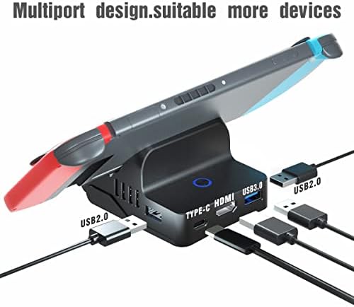 Multiport Switch Docking Station:Switch docking station with USB2.0 X2,USB3.0 X1,HDMI X1,Tpce-c X1 port.Switch LAN adapter plugs into ultra-high transfer speed USB3.0 port. Increase your advantage in the game.Switch docking station compatible gamecube adapter support multiplayer online games. Playing Super Smash Bros with friends or family during game time.