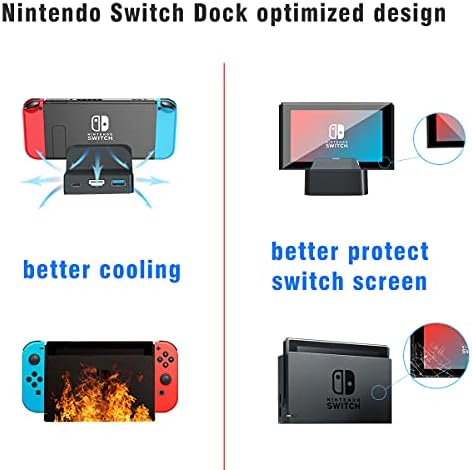Optimized Cooling Function: the bottom and sides of this dock are equipped with unique cooling holes, which greatly improves the problem of poor heat dissipation on the dock Nintendo Switch original. Good heat dissipation not only extends the battery life of the Nintendo Switch, but also avoids other problems caused by overheating of the device.