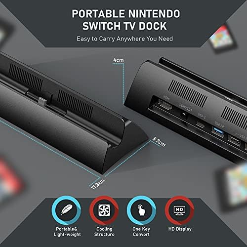 Portable & Lightweight: Nice small dock alternative for the switch. Save space and travel friendly. compact and lightweight so it fits your pocket, switch carrying case, and switch travel bag! You just need to take this dock and original wall charger. Ideal Replacement for Your Official Nintendo Switch Dock