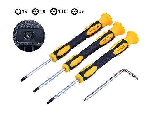 Screwdriver includes: Torx T6 T8H T9H T10H (“H” mean “Hole in screwdriver tip center” )