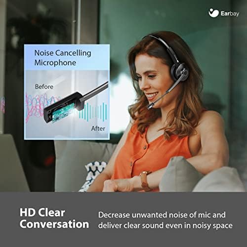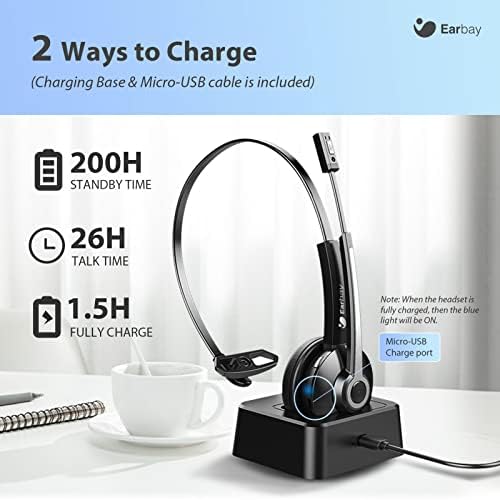 【Lasting Battery & Service】: This Earbay headsets with microphone supports 26+ hours talking time, 200+ hours standby time, It only takes 1.5 – 2 hours to fully charge with charging base or Micro-USB cable(all included). Earbay offer 1-year warranty and 24-hour technical support for every users.