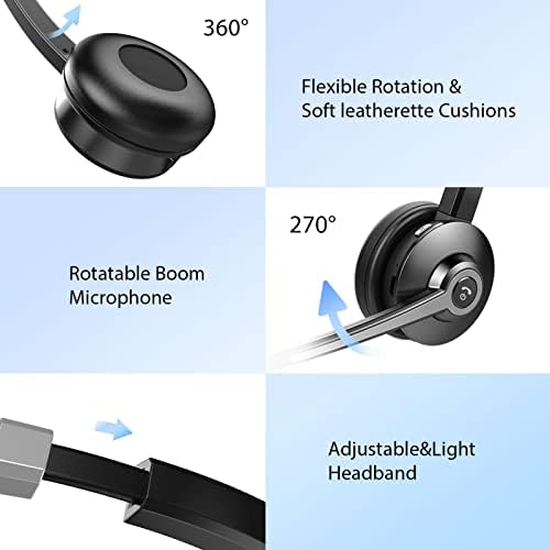 【Comfort all day】: The Wireless headphones comes with comfort leatherette ear cushion, which can reduce the pressure of ears. 270° rotatable mic ensures perfect angle to capture your voice and ideal position. Light headband can be freely adjusted to fit for most head size.