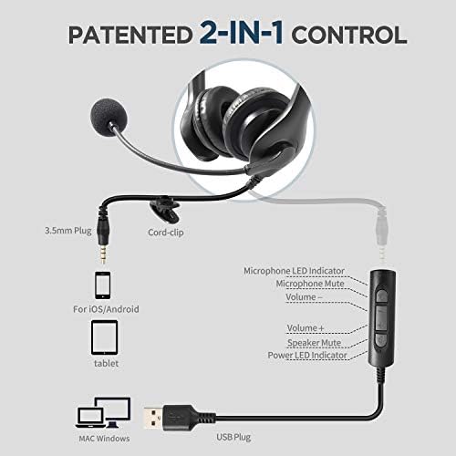 Ultra 2 in 1 Computer Headset: The headset with microphone for laptop corded with a 3.5 mm connection and a USB adapter with volume and mute controls for the microphone or speaker. Which gives you an additional USB option for pc computer, or using 3.5 mm jack for tablets/phones/media devices.