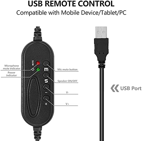SIMPLE AUDIO CONTROLS – Easy to access volume and mute controls in the cord, you can quickly adjust the headset volume up/down, mute/un-mute the microphone or speaker.Note: Please adjustable the mic near to your mouth for optimum conversation effect.